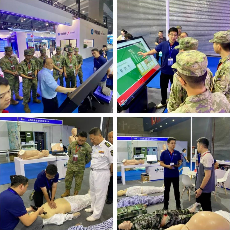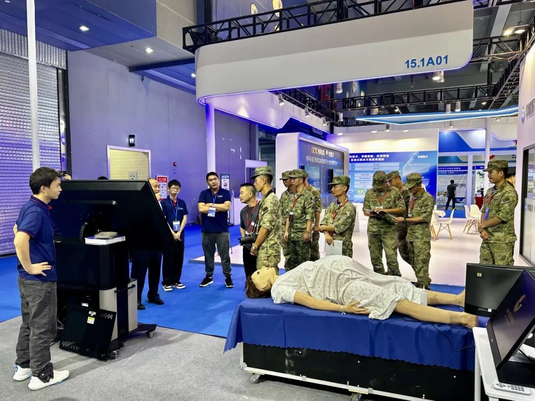 兩交會促進兩用技術物資裝備研究應用,推動了兩用技術物資裝備產業(yè)發(fā)展,圍繞部隊“作訓、后勤、裝備”三大任務需求,為部隊建設和裝備物資采購提供參考。部隊領導嘉賓、政府、協(xié)會等紛紛出席展會,了解新興技術與裝備。      天堰科技作為國內高端醫(yī)教產品研發(fā)制造商和服務提供商,也積極投入衛(wèi)勤培訓設備的開發(fā),并與國內著名軍醫(yī)大學進行強強合作。本次展會攜智能化戰(zhàn)創(chuàng)傷模擬訓練系統(tǒng)、自救互救模擬人、智能分娩模擬人、臨床醫(yī)學模擬病人系統(tǒng)等多款自研產品參加。在為期3天的會展中,天堰科技本著 “讓真實觸手可及”的宗旨,向參展人員充分展示了天堰科技在軍民兩用、醫(yī)學教育領域內的行業(yè)優(yōu)勢、產品專業(yè)性和豐富性,吸引了眾多部隊領導停駐展位,交流溝通。