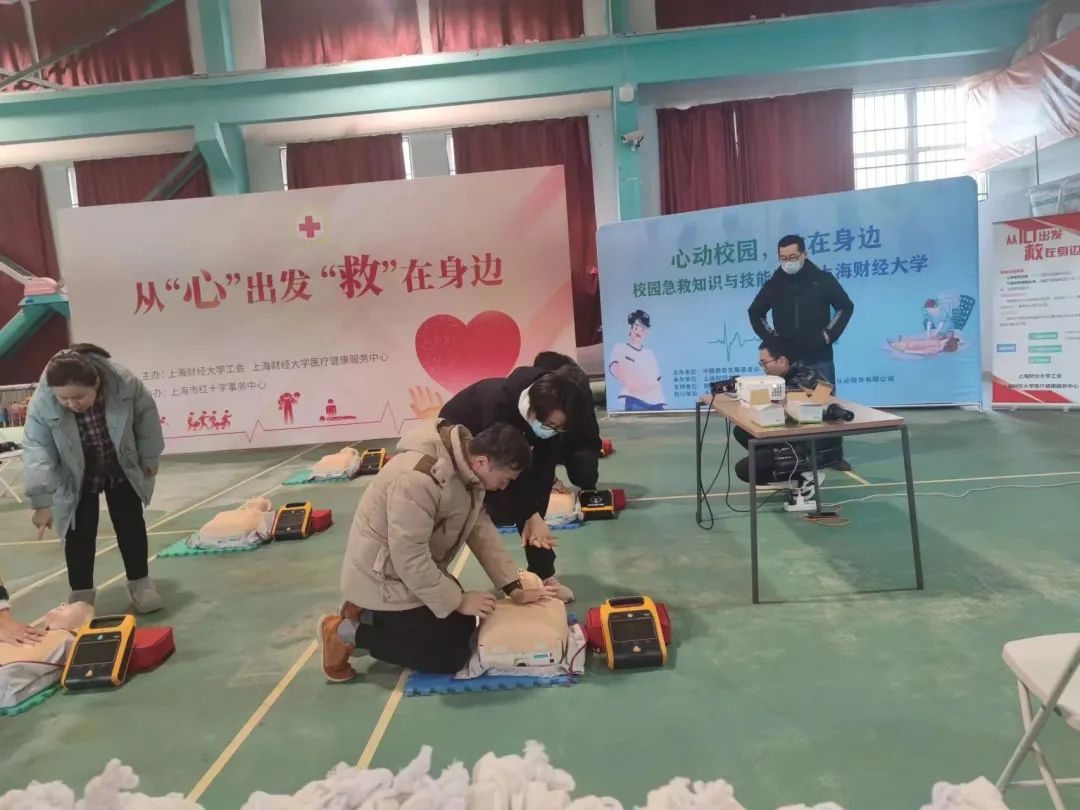 為深入推進(jìn)學(xué)習(xí)貫徹黨的二十大精神,向校園普及急救知識,提高師生安全救護(hù)意識和應(yīng)急救護(hù)能力,2023年12月26日下午,由天津天堰科技股份有限公司支持的“心動校園,救在身邊”主題活動在上海財經(jīng)大學(xué)順利舉行。