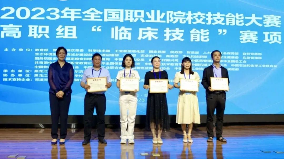 臨床技能賽項(xiàng)教師組一等獎(jiǎng)?lì)C獎(jiǎng)合影